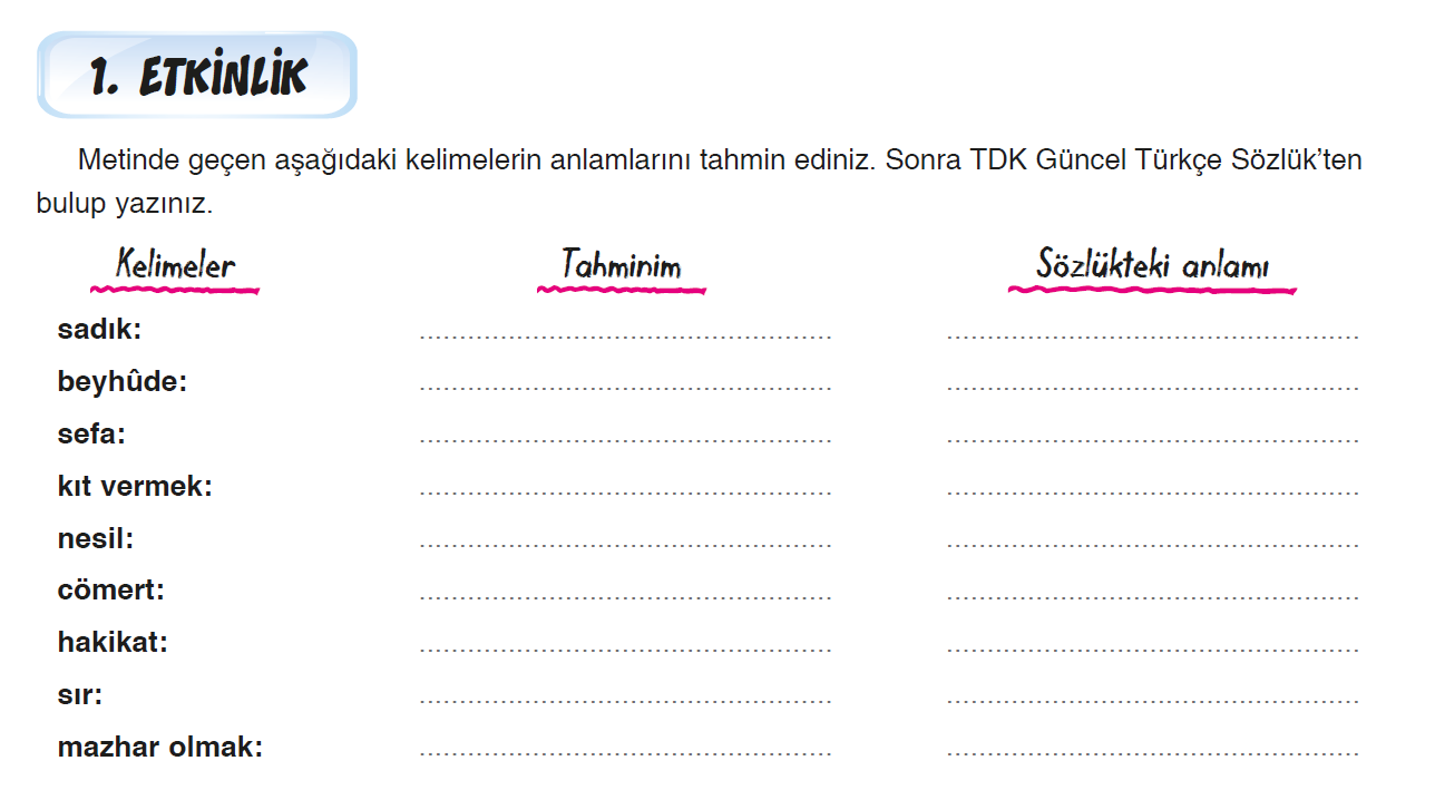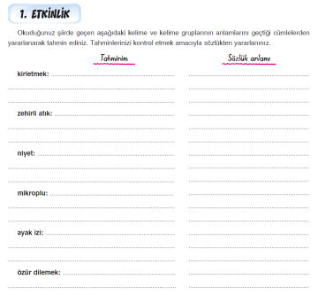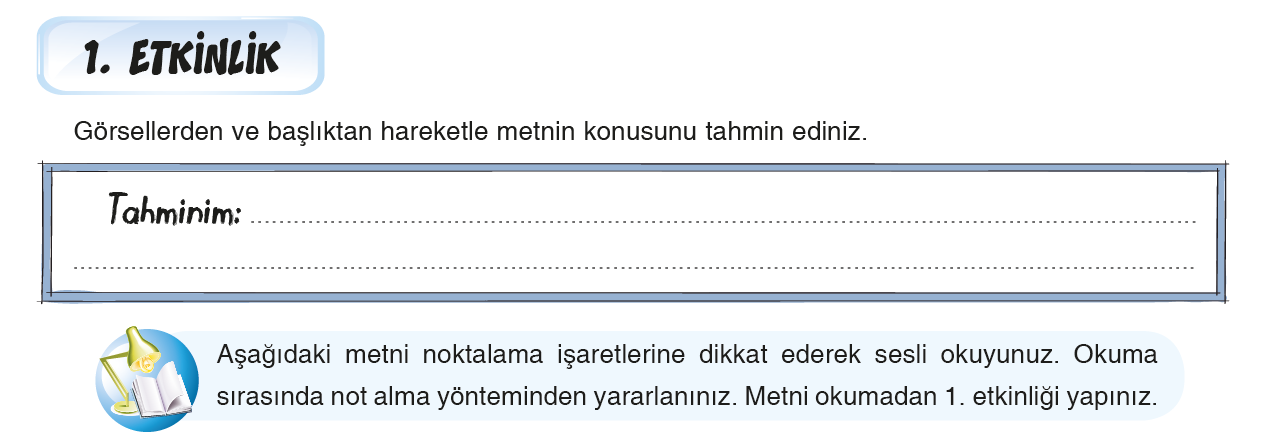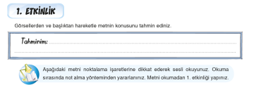 2023-2024 eğitim öğretim döneminde 7. sınıflarda kullanılan Dörtel Yayıncılık yayınevine ait 7. sınıf Türkçe ders kitabı incelendiğinde tahmin etme etkinliklerine bir hayli yer verildiği görülmektedir. Söz konusu etkinliklere 7. sınıf ders kitabında 22 defa yer verilmiştir. Bu etkinliklerin 7 tanesi metin öncesi tahmin etkinlikleridir. Dinleme/okuma metninden önce öğrencinin metinle ilgili bazı hususları tahmin etmesi istenmektedir. Geriye kalan 15 etkinlik ise okuma/dinleme metnin sonrasında yapılan tahmin etkinlikleridir. Metin sonrası yapılan etkinlikler genellikle metnin içinde geçen bazı kelimelerin anlamlarını tahmin ederek sözlükteki karşılıklarıyla karşılaştırma şeklinde gerçekleştirilmektedir.